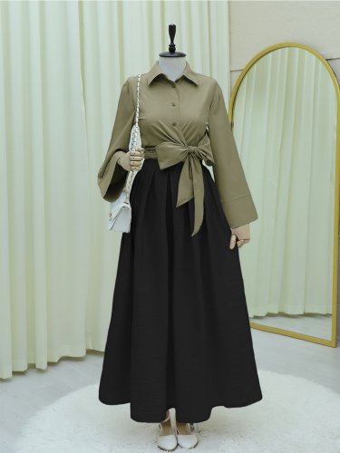 Yan Bağlamalı İspanyol Kol Düğmeli Gömlek -Haki