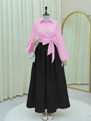 Yan Bağlamalı İspanyol Kol Düğmeli Gömlek -Pembe