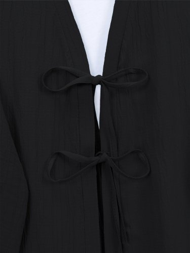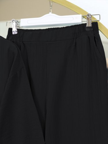 Önü Çift Bağcıklı Pantolonlu Krınkıl Takım -Siyah