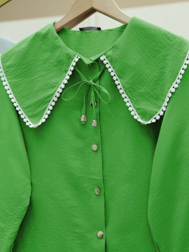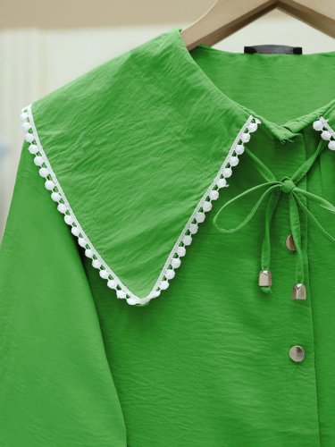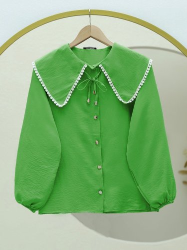 Bebe Yaka Dantelli Kolu Lastikli Gömlek -Yeşil