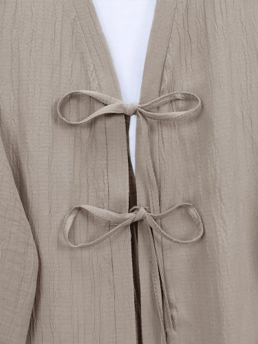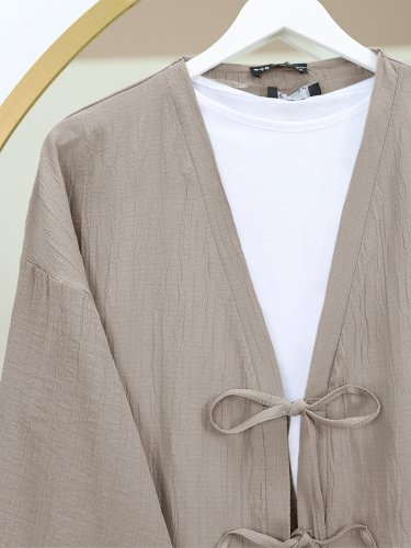 Önü Çift Bağcıklı Pantolonlu Krınkıl Takım -Vizon