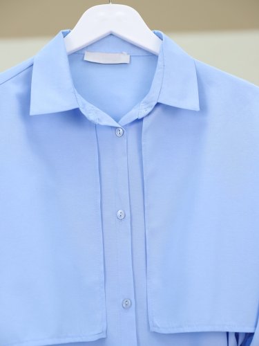 Bolero Detaylı Beli Bağlamalı Yırtmaçlı Gömlek -Bebe Mavi