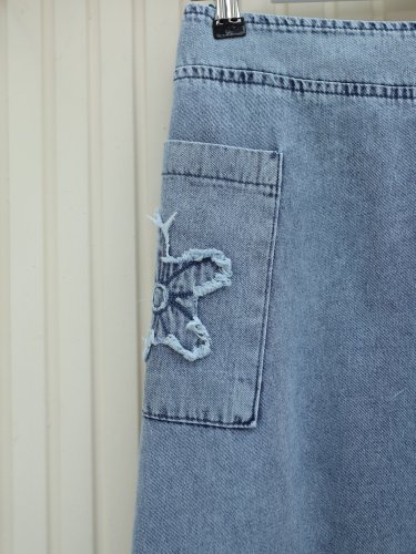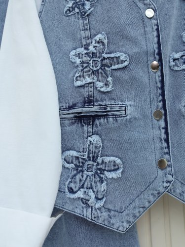 Desenli Etek Beli Lastikli Yelek Etek Kot Takım -Buz Mavi