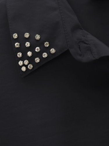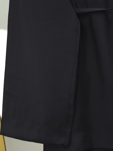 Yakası Taşlı Belden Bağlamalı Pantolonlu Takım -Siyah