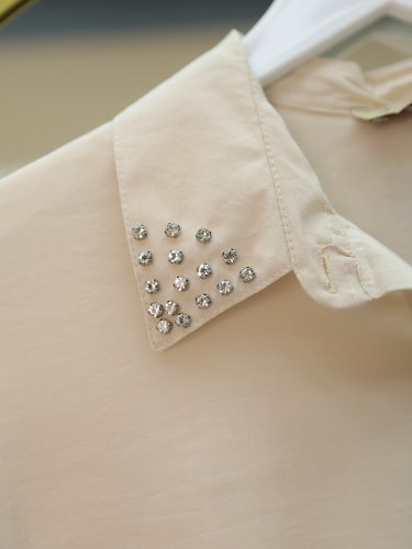 Yakası Taşlı Belden Bağlamalı Pantolonlu Takım -Bej