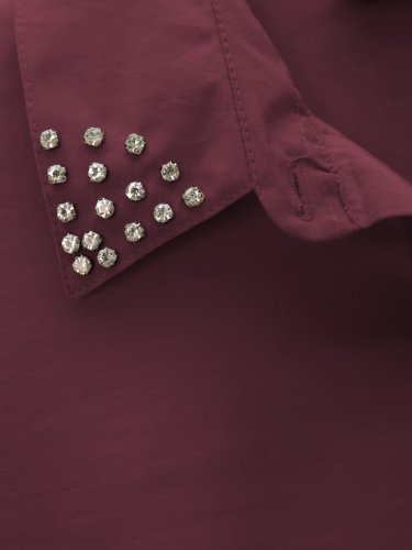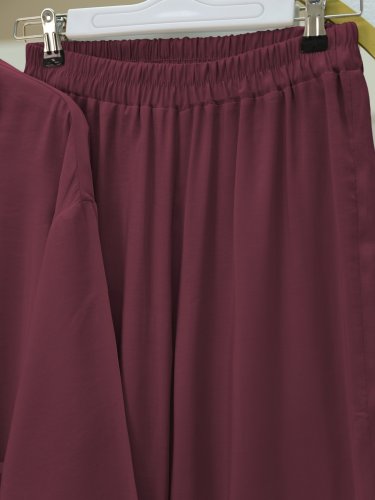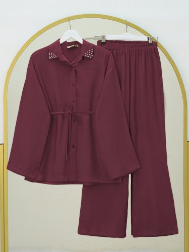 Yakası Taşlı Belden Bağlamalı Pantolonlu Takım -Bordo