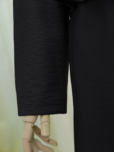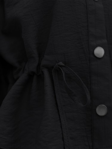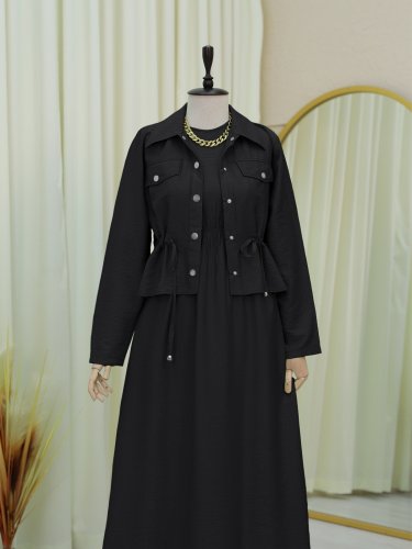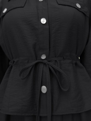 Metal Düğmeli Beli Bağlamalı Gömlek Jile Elbise -Siyah