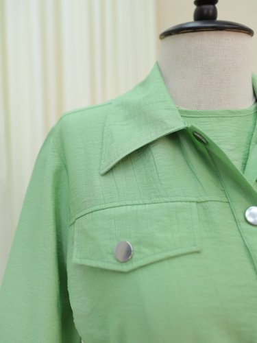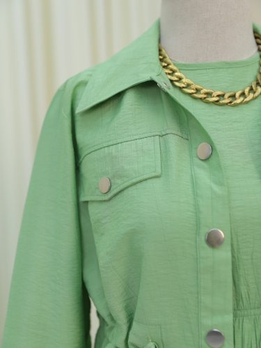 Metal Düğmeli Beli Bağlamalı Gömlek Jile Elbise -A.Yeşil
