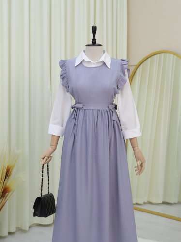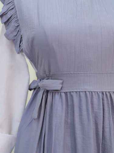 Beli Bağlamalı Fırfır Detaylı Jile Elbise -Gri