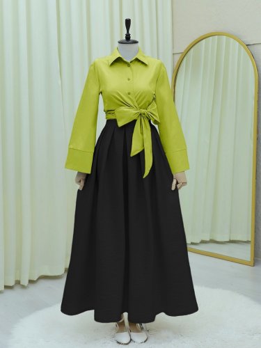 Yan Bağlamalı İspanyol Kol Düğmeli Gömlek -Fosfor Y