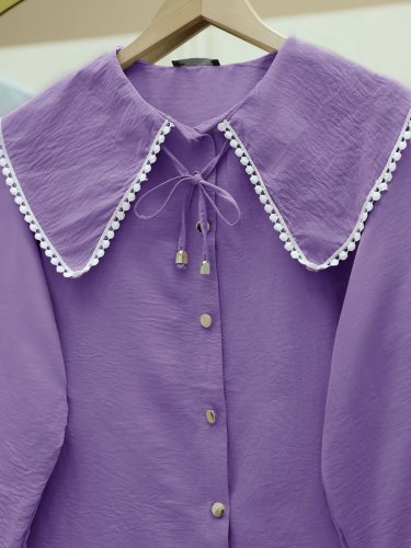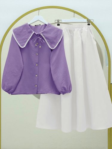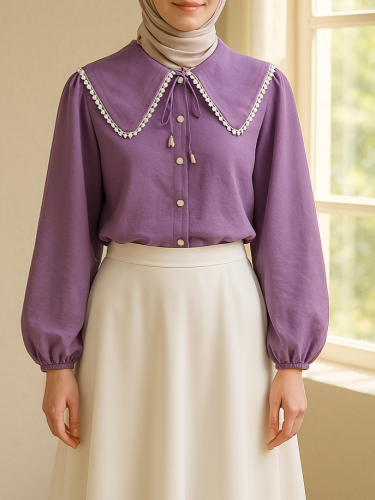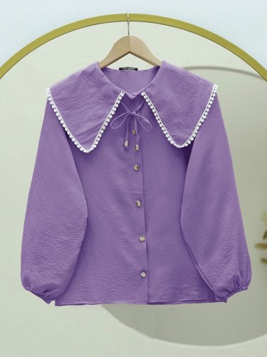 Bebe Yaka Dantelli Kolu Lastikli Gömlek -Lila