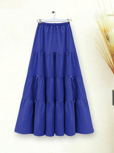 Kurdele Detaylı Parçalı Beli Lastikli Etek -Saks