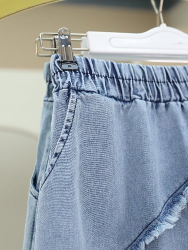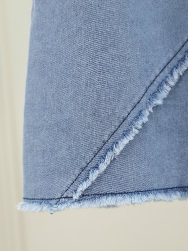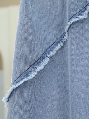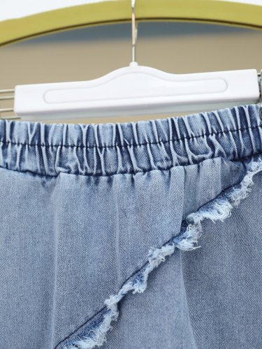 Püskül Detaylı Beli Lastikli Kot Etek -Buz Mavi