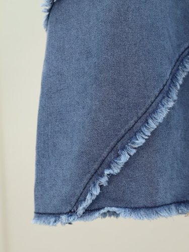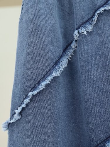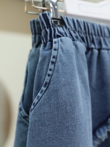 Püskül Detaylı Beli Lastikli Kot Etek -İndigo