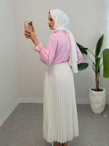Yakası Büzgülü Bluz -Pembe