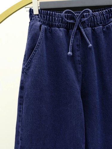 Beli Lastikli Cepli Bol Paça Kot Pantolon -İndigo