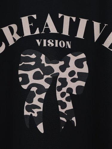 Yuvarlak Yaka Fiyonk Baskılı Leopar Etekli Takım -Siyah