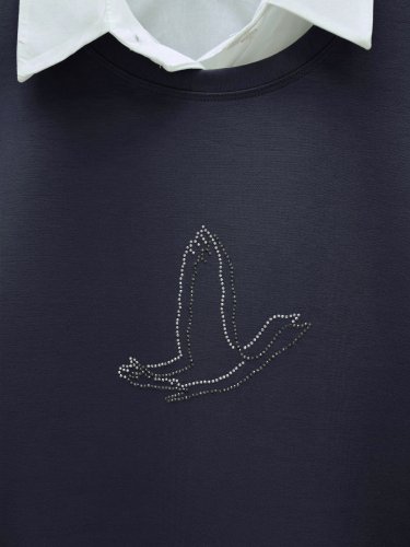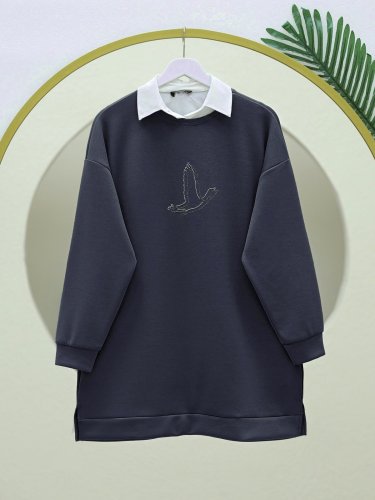 Kuş Desenli Taşlı Oysho Tunik -Füme