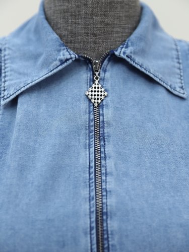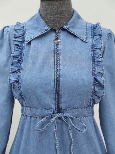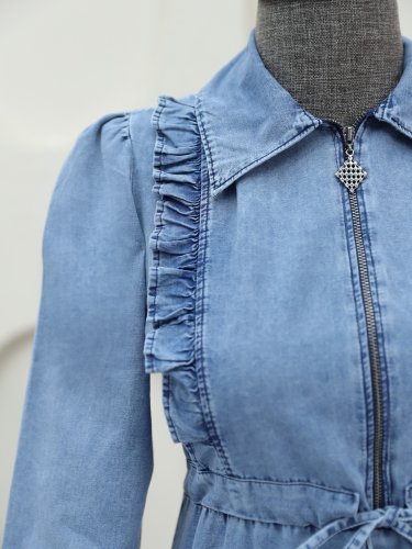 Yarım Fermuarlı Tünel Bağcıklı Kot Elbise -Buz Mavi