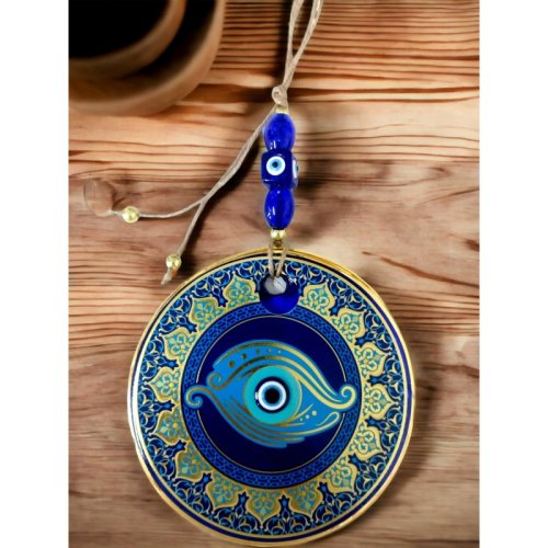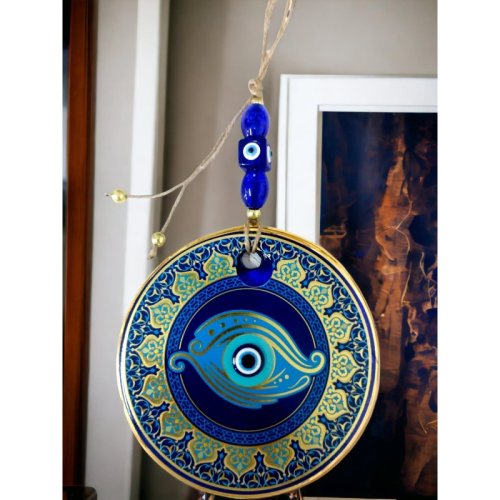 Altın İşlemeli Balık Gözlü Nazar Boncuklu Duvar Süsü