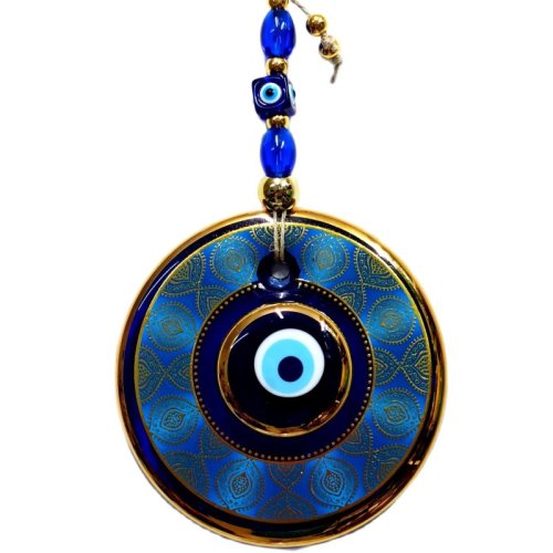 Altın Yaldızlı Nazar Boncuğu İşlemeli El Yapımı Duvar Süsü Hediyelik Nazarlık