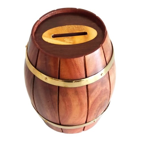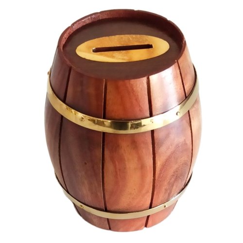 Maun Ağacından Dekoratif Ahşap Fıçı Kumbara