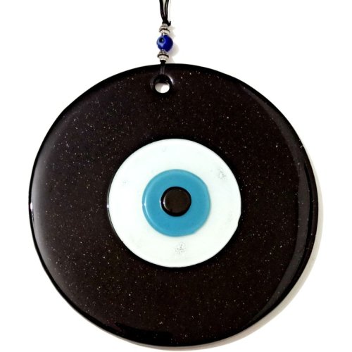 Mavi Nazar Boncuklu 16 Santimetre El Yapımı Siyah Duvar Süsü Nazarlık