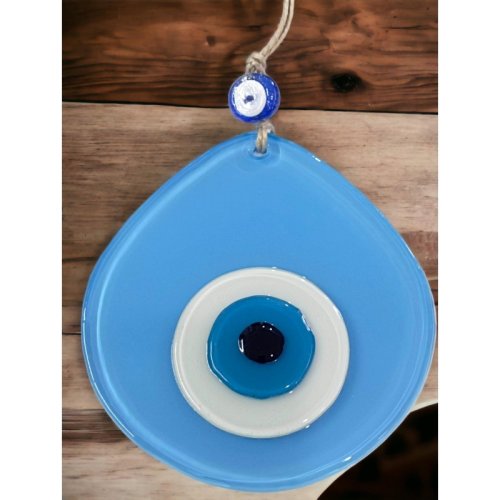 Mavi Nazar Boncuklu Açık Mavi Renk Nazar Boncuklu Damla Desen El Yapımı Duvar Süsü