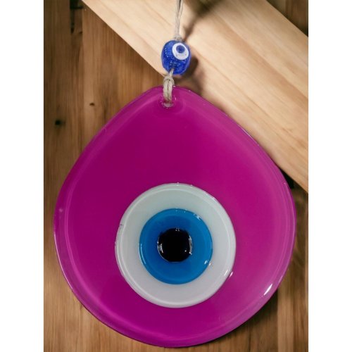 Mavi Nazar Boncuklu Pembe Renk Nazar Boncuklu Damla Desen El Yapımı Duvar Süsü