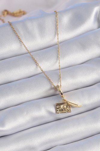 316L Çelik Gold Renk Kalp Detay Mektup Figür Charm Model Kadın Kolye