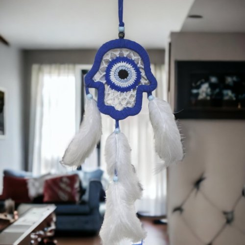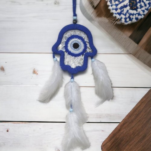 Nazar Boncuğu Motifli Mavi Fatma Ana Eli Duvar Süsü El İşçiliği Duvar Dekoru