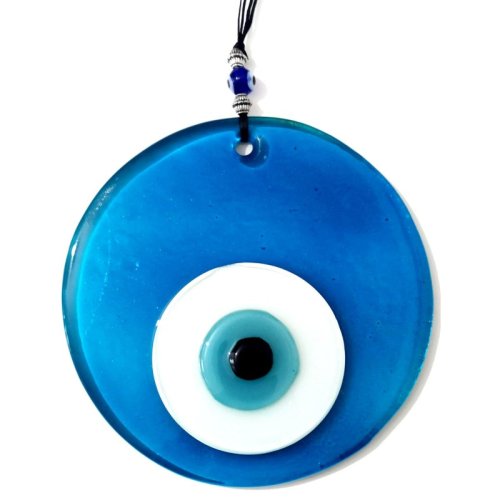 Şeffaf Turkuaz El Yapımı Nazar Boncuklu Cam Duvar Süsü