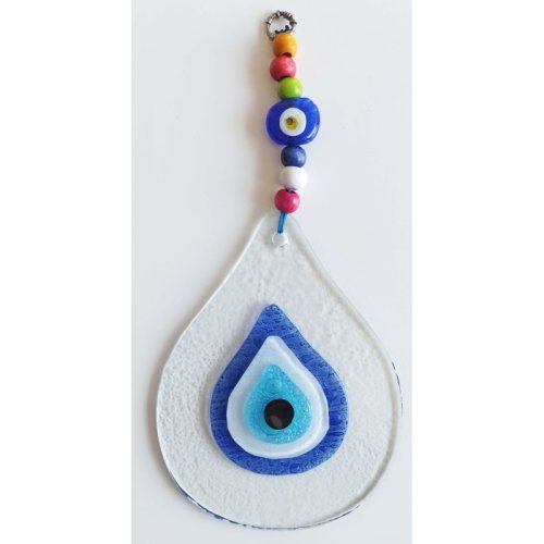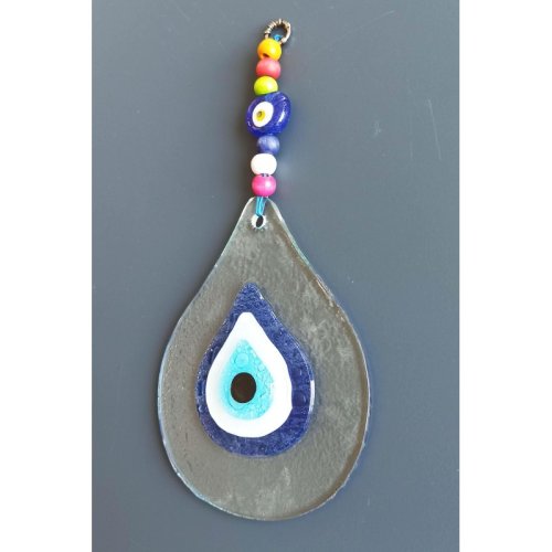 Damla Modeli Nazar Boncuklu Şeffaf Cam El Yapımı Duvar Süsü