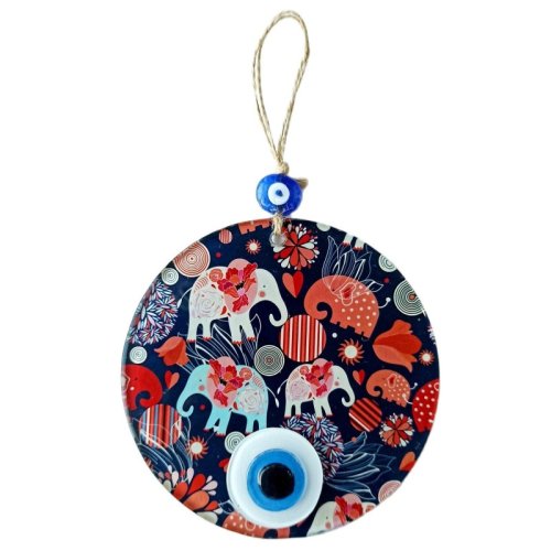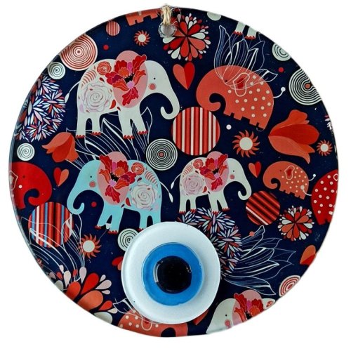 Nazar Boncuklu Fil Desenli Duvar Süsü Füzyon Cam Filli Duvar Dekoru