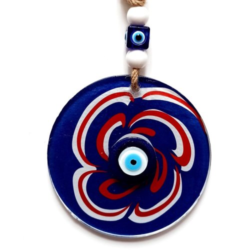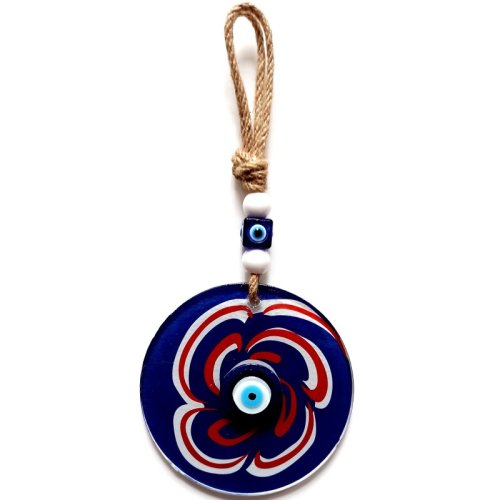 Nazar Boncuklu Lacivert Şeker Modelli Cam Duvar Süsü