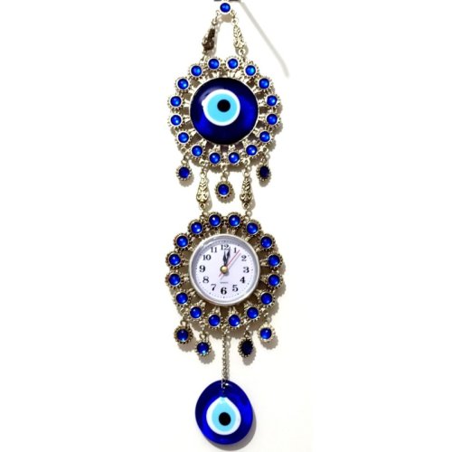 Nikel Zamak Kaplamalı Nazar Boncuklu Gümüş Rengi Mini Duvar Saati