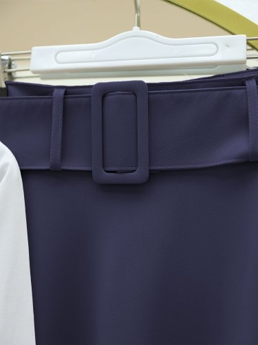 Kalın Kemerli Bol Kiloş İthal Krep Etek -Laci