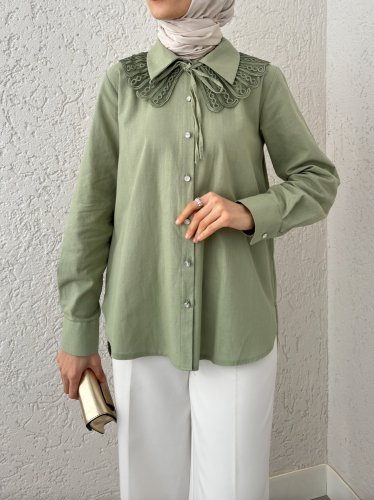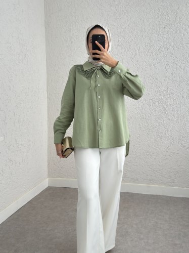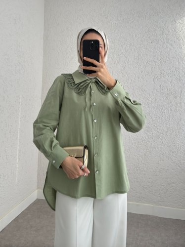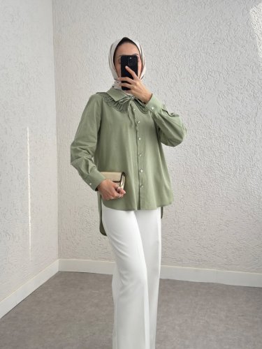 Yakalık Detaylı Arkası Uzun Düğmeli Gömlek -Çağla Y