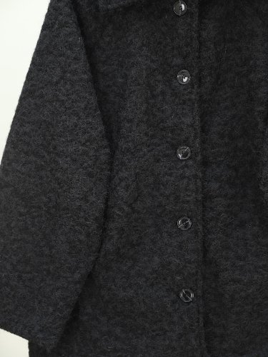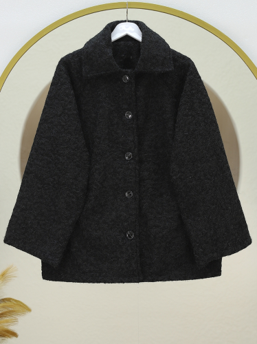 Çift Cepli Önü Düğmeli Astarlı Buklet Kaban -Siyah