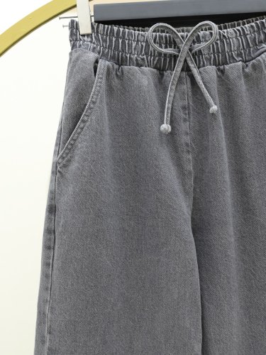 Beli Lastikli Cepli Bol Paça Kot Pantolon -Füme