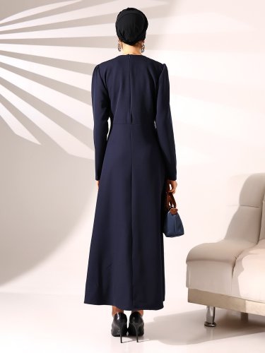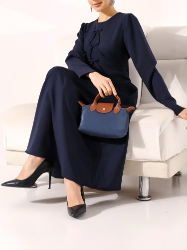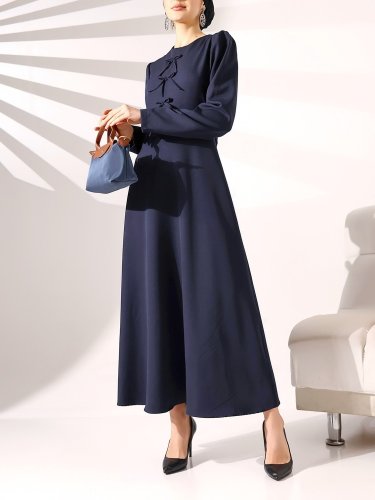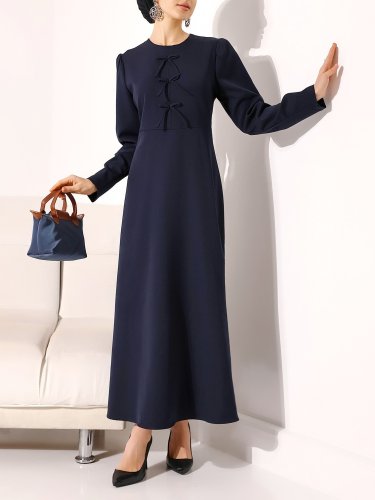Kurdele Detaylı İthal Krep Elbise -Laci