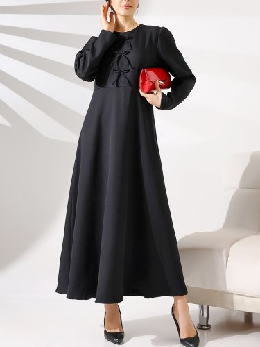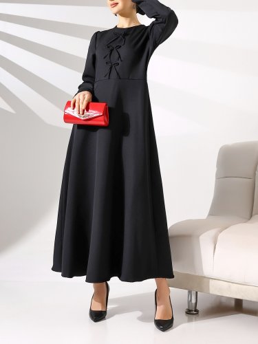 Kurdele Detaylı İthal Krep Elbise -Siyah