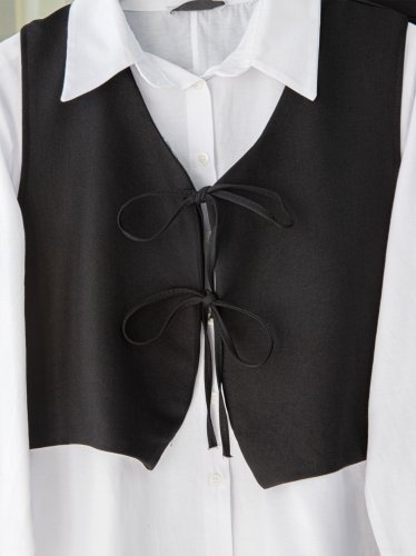 Önü Bağcıklı Pantolon Yelek İkili Keten Takım -Siyah