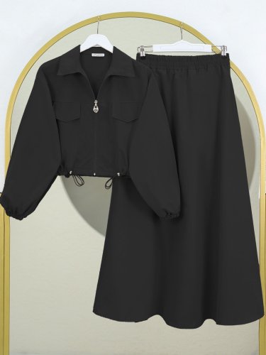 Beli Lastikli Etekli Takım -Siyah