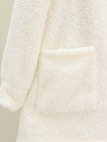 Boydan Düğmeli Cepli Pelüş Ceket -Ekru