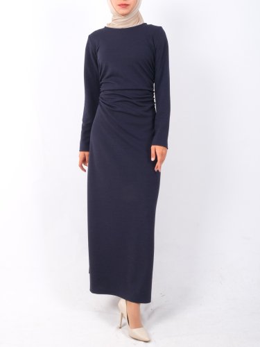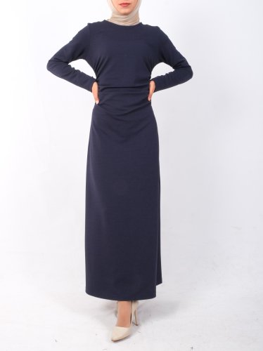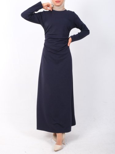 Belden Büzgülü Örme Krep Likralı Elbise -Laci