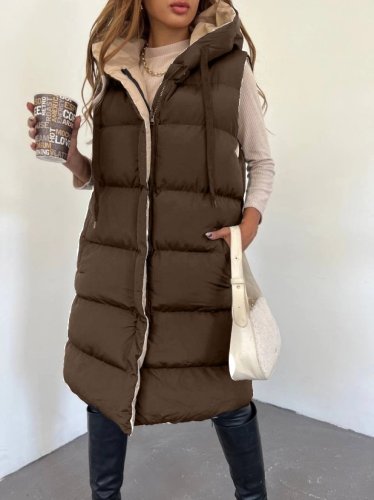 Kapşonlu Çift Taraflı Şişme Yelek -Kahve