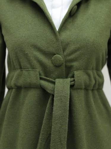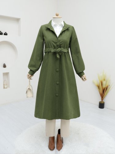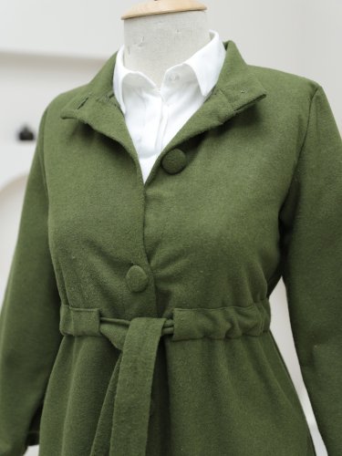 Hakim Yaka Tünel Bağcıklı Kaşe Kaban -Haki