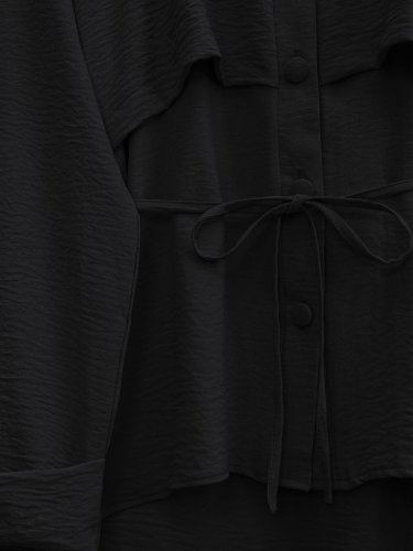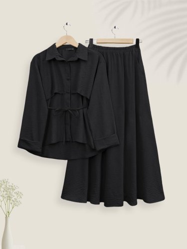 Top Düğmeli Kemerli Etekli Ayrobin Takım -Siyah