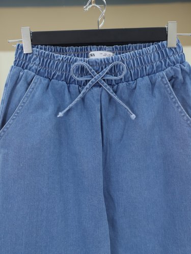 Beli Lastikli Cepli Bol Paça Kot Pantolon -Mavi